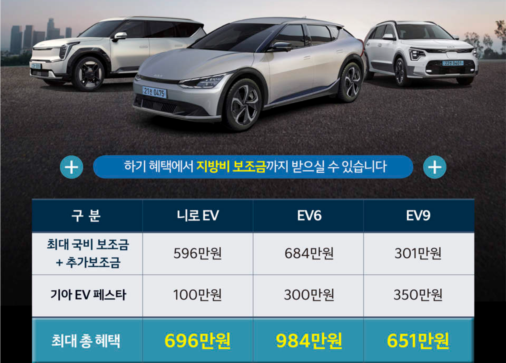 니로EV는 최대 보조금 596만원을 보조금으로 받을 수 있습니다. 니로 플러스는 529만원을 보조금으로 받을 수 있습니다.